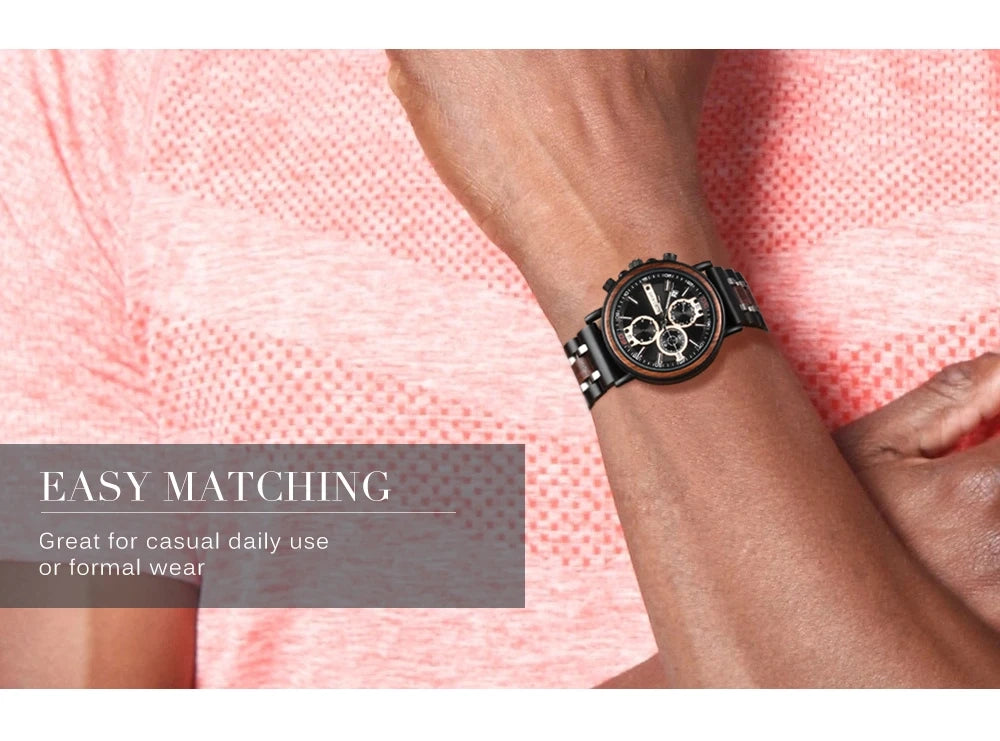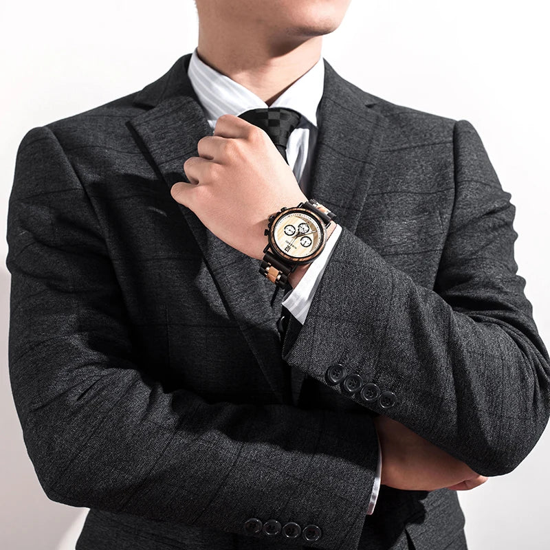 BUCK Wooden Watch Men Top Brand Luxury Stylish Chronograph Military Watches Wooden Box Logo Custom Great Gift reloj hombre